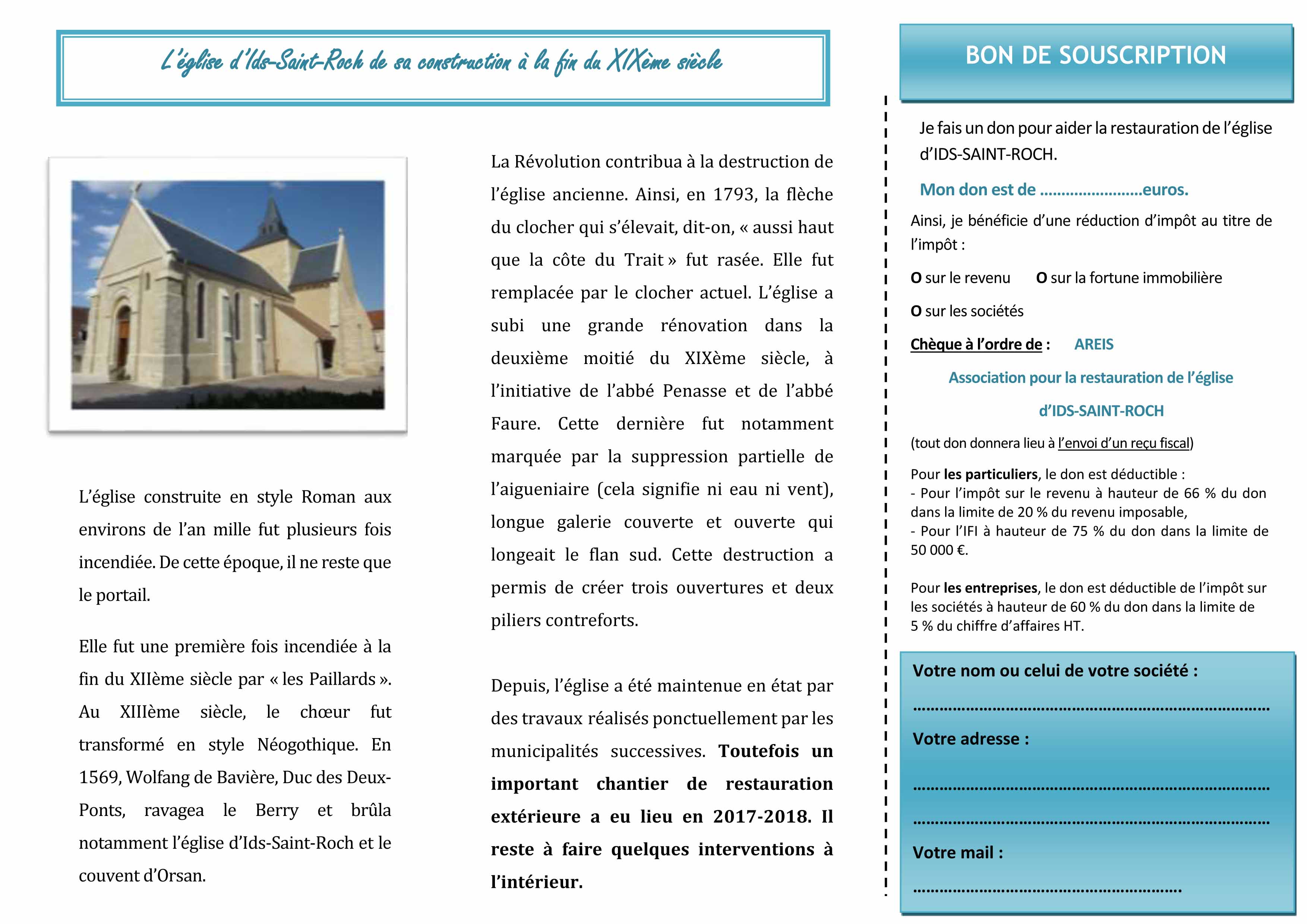 ASSOCIATION POUR LA RESTAURATION DE L'EGLISE D'IDS-SAINT-ROCH
